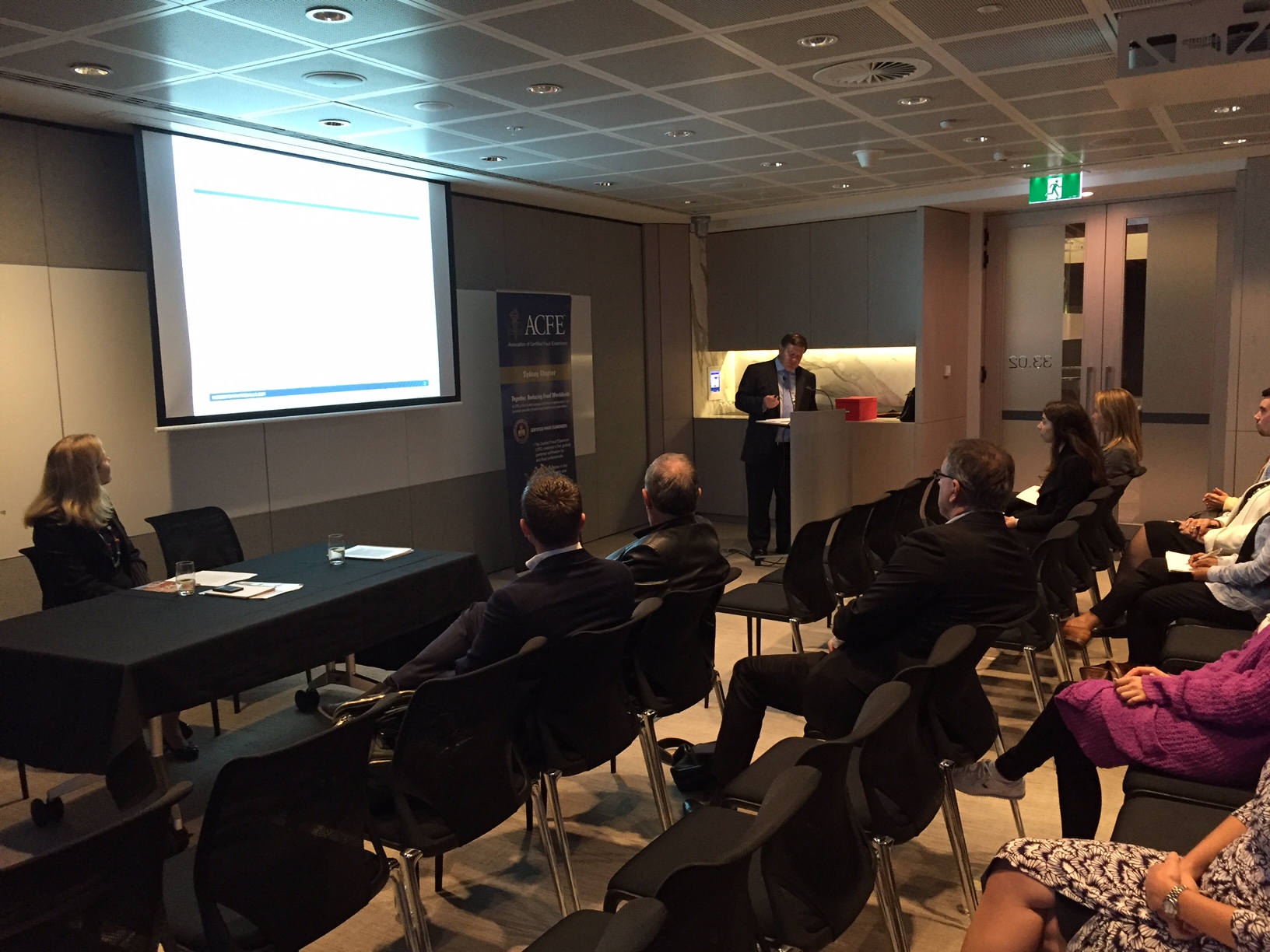 Mr Robertson presenting to ACFE Sydney Chapter members and guests