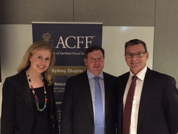 Ms Newton and Mr Robertson with ACFE Sydney’s Mr Wildman